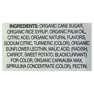 Only 50 calories per snack pack! USDA Organic. Certified Organic by Oregon Tilth. Gluten free. Vegan. Non GMO Project verified. nongmoproject.org. No artificial dyes. Allergy Friendly: Safe for the classroom (Even more reasons to love them: vegan; gluten-free; organic & non-GMO; colored with real fruit & vegetable juices; manufactured & packaged in a peanut free facility; made without: soy; egg; dairy; fish; shellfish; peanuts or tree nuts; artificial dyes; high fructose corn syrup). Since 2007, we've been making organic candy with a whole lotta love and simple ingredients you can pronounce. We offer a tasty variety of organic and allergy-friendly candy that is so delicious you will love to share (or keep all to yourself). What's not to love? yumearth.com. Scan for more! Visit yumearth.com faqs for complete packaging and manufacturing info. Try our other sweet treats! Product of Spain.