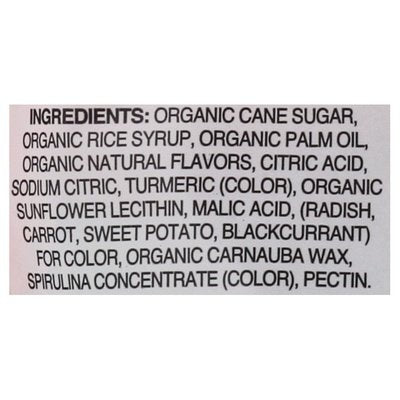 Only 50 calories per snack pack! USDA Organic. Certified Organic by Oregon Tilth. Gluten free. Vegan. Manufactured & packaged in a peanut free facility. Allergy Friendly: Safe for the classroom. Non GMO Project verified. nongmoproject.org. No artificial dyes. Since 2007, we've been making organic candy with a whole lotta love and simple ingredients you can pronounce. We offer a tasty variety of organic and allergy-friendly candy that is so delicious you will love to share for keep all to yourself. What's not to love? Even more reasons to love them: Colored with real fruit & vegetable juices. Made without: soy; egg; dairy; fish; shellfish; peanuts or tree nuts; artificial dyes; high fructose corn syrup. yumearth.com. Scan for more! Visit yumearth.com FAQS for complete packaging and manufacturing info. Try our other sweet treats! Product of Spain.