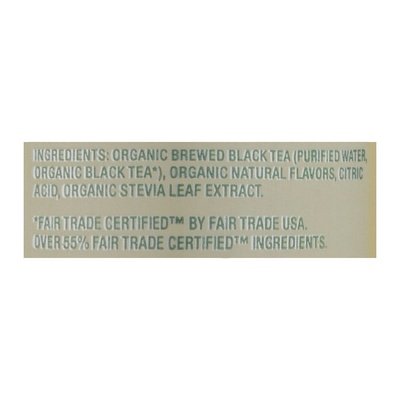 Naturally flavored. Organic. USDA Organic. Certified Organic by QAI. No sugar. Certified Gluten free. Vegan. Zero calories. Caffeine: 45 mg / 12 fl oz. Non GMO project verified. nongmoproject.org. www.zevia.com. Fair Trade Certified tea. Please recycle. Product of USA.