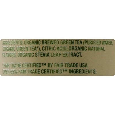 Naturally flavored USDA Organic. Certified organic by QAI. Certified gluten-free. Vegan. Non-GMO Project verified. nongmoproject.org No sugar. Zero calories. Caffeine: 45 mg/12 fl oz. Over 65% fair trade certified ingredients. www.zevia.com Fair Trade Certified Tea. Please recycle. Product of the USA